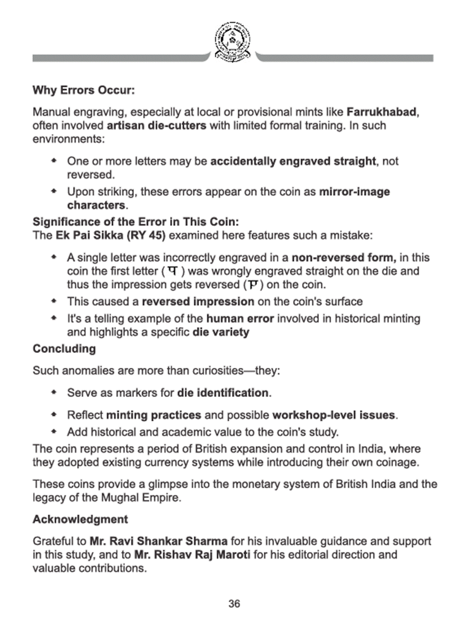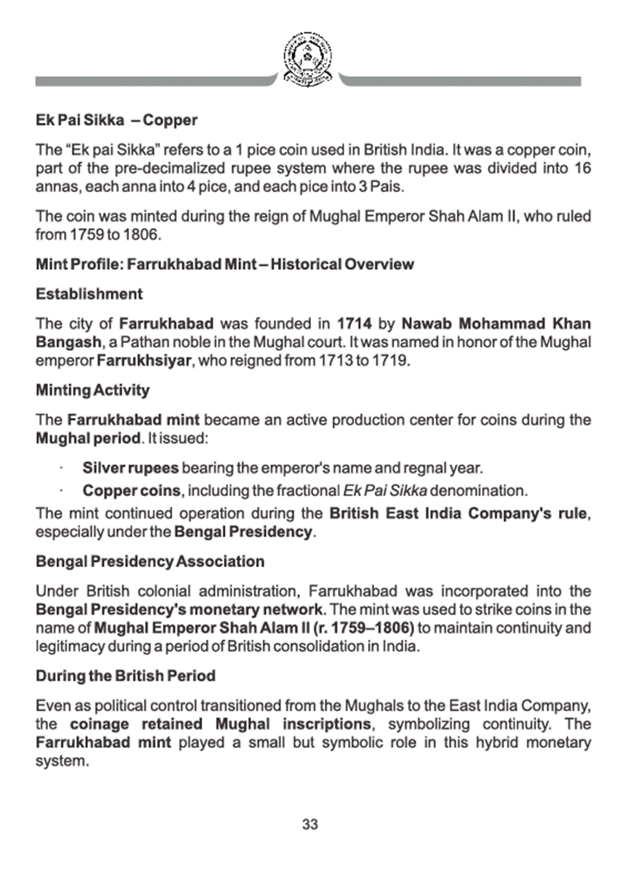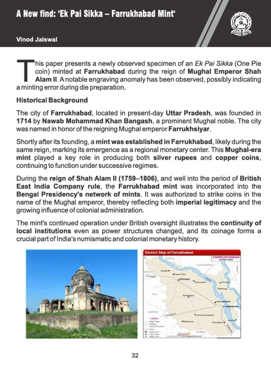 Jaiswal V, A New Find ‘Ek Pai Sicca – Farrukhabad Mint’, 2005, J. Numismatic Society of Calcutta, p. 32