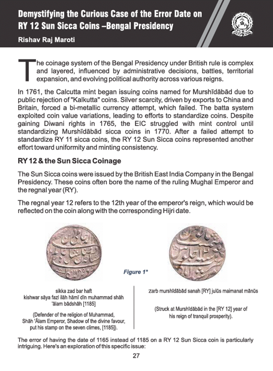 Maroti RR, Demystifying the Curious Case of the Error Date on RY 12 Sun Sicca Coins…, J. Numismatic Society of Calcutta, 2005, p. 27