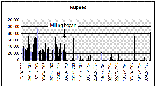 half pice (despite the fact that he had been told not to produce half pice) [42]. By October, all of the copper