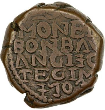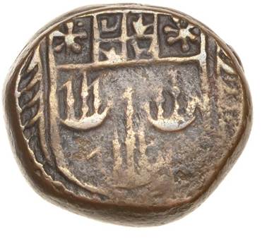 Brt-723g. Wt = 13.57g. Diam = 20.0-22.4mm Rosettes rather than dots on the obverse.