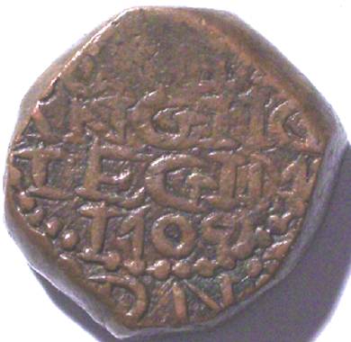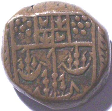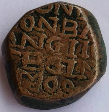 Wt = 13.09g. Diam = 19.7-20.8mm. NB unbarred A in BOMBAV |