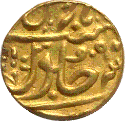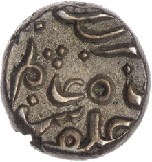 sikka mubārak bādshāh ghāzī ‘ālamgīr [AH] (= The auspicious coin of the Victorious Emperor ‘Ālamgīr [AH]) |