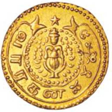 Brt-214. Wt = 2.94g. Diam = ~17.17mm. Continuous circle of dots under Vishnu