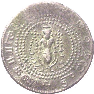 Bottom two dots at left of Vishnu on reverse are very small |