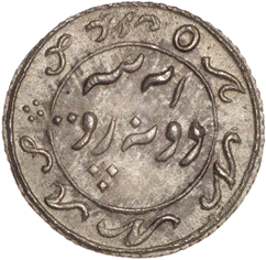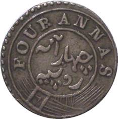 A Persian Inscription in four lines: In Sikka Hanarabal Kampani seh falūs