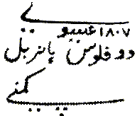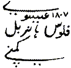 A Persian Inscription in four lines: Do falūs Hanarabal Kampani isavi 1808