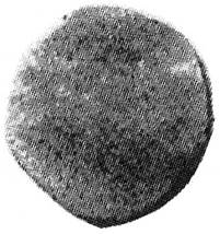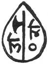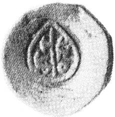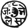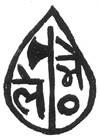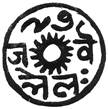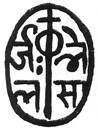 (or hollow dot?) below. All within a tear-shaped border. Nagari characters engraved retrograde |