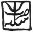 An inverted bow and arrow with the words zarb Bhilsa, in Persian, below.