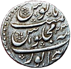 Struck money through the world like the shining moon. Shāh Aurangzeb